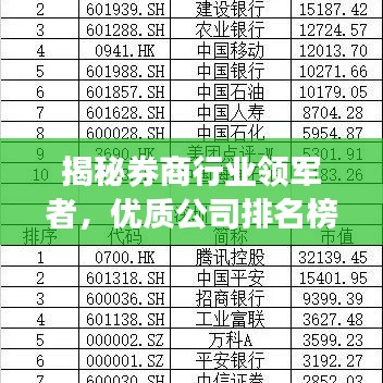 随着金融市场的不断发展和深化,券商行业日益成为投资者关注的焦点,如何在众多券商公司中识别出优质、领先的企业,成为了投资者们争相探讨的课题,本文将根据行业数据、业绩表现、服务质量等多个维度,揭示券商优质公司的排名,为投资者提供参考。