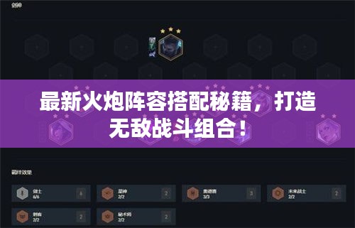 火炮作为重要的火力支援武器,对于战斗的结果起着举足轻重的作用,随着科技的进步,各种新型火炮不断涌现,如何将这些火炮进行合理的搭配,形成战斗力强大的阵容,成为了众多军事爱好者关注的焦点,本文将为您详细介绍最新的火炮阵容搭配攻略。
