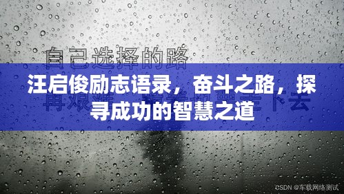 转载请注明来自马鞍山同杰良,本文标题:《汪启俊励志语录,奋斗之路,探寻成功的智慧之道》