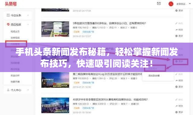 手机发头条新闻需要我们掌握一定的技巧和规律,通过选择合适的平台、掌握写作技巧、提高内容质量和吸引力,并遵守相关规定,我们可以轻松地掌握手机发头条新闻的诀窍。