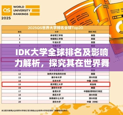 随着全球教育的不断发展和进步,越来越多的学生和家长在择校时,会关注大学的国际排名和全球影响力,作为一所享有盛誉的高等学府,IDK大学自然吸引了无数求学者的目光,本文将深入探讨IDK大学的世界排名情况,以及其全球影响力。