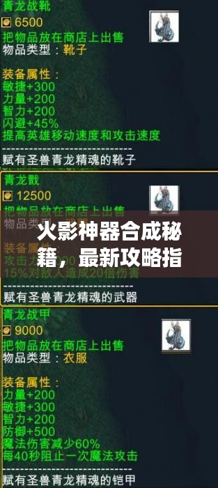 随着游戏版本的更新,部分神器的合成路径和所需材料可能有所调整,玩家需要关注游戏内的公告和更新信息,以便获取最新的神器合成攻略。
