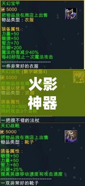 在火影世界中,神器是玩家们追求的高阶装备,拥有强大的属性和技能,能极大提升玩家的战斗力,神器合成需要一定的材料和合成技巧,不同的神器合成所需的材料和难度也有所不同。