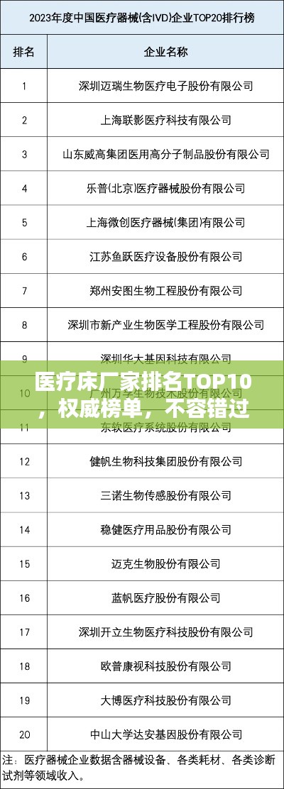 在医疗设备和家居护理领域,医疗床的应用日益广泛,对于需要长期卧床的病人,一张优质的医疗床能大大提高其生活质量和康复效果,在众多的医疗床厂家中,哪些是排名前十的优质厂家呢?本文将为您揭晓。