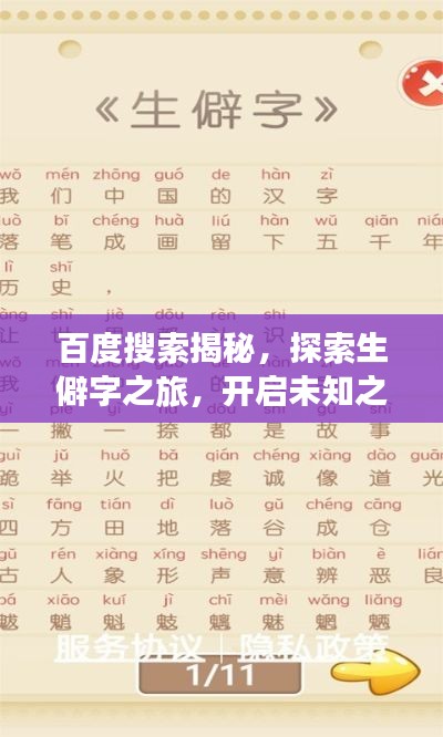 随着科技的进步和互联网的普及,搜索引擎已经成为我们获取信息的重要途径之一,百度作为中国最大的搜索引擎,每天都在为广大用户解决各种问题,提供丰富的信息,我们要探索的是百度搜索中的另一片天地——生僻字。