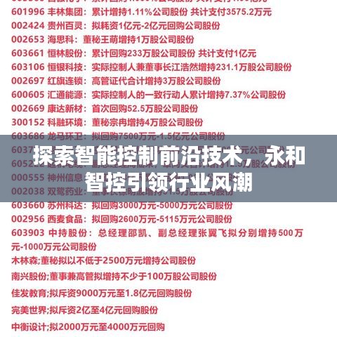 随着科技的飞速发展,智能控制技术日益受到人们的关注,在众多智能控制企业中,永和智控以其卓越的技术实力和创新精神脱颖而出,本文将通过百度搜索,带您了解永和智控的发展历程、产品特点、技术实力以及未来展望。