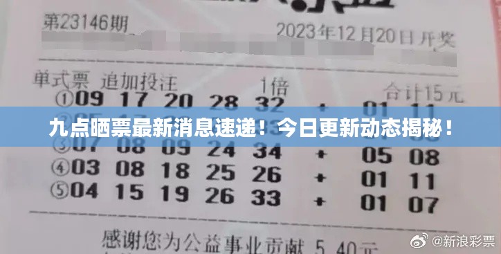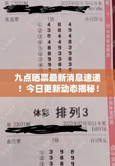 随着社会的不断发展,彩票已经成为人们日常生活中的一种娱乐方式,彩票的购买不仅能够给人们带来期待和惊喜,更能在某种程度上满足人们对于公益事业的贡献感,而在这个信息爆炸的时代,关于彩票的最新消息无疑成为了广大彩民关注的焦点,本文将为大家带来九点晒票今日最新消息,为广大彩民提供一手资讯。