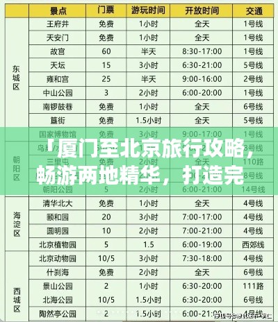 厦门与北京,一南一北,距离虽远,但旅行的热情足以跨越千山万水,从厦门出发,向着北京进发,一趟全新的旅程即将展开,以下是为这次旅行精心策划的攻略。