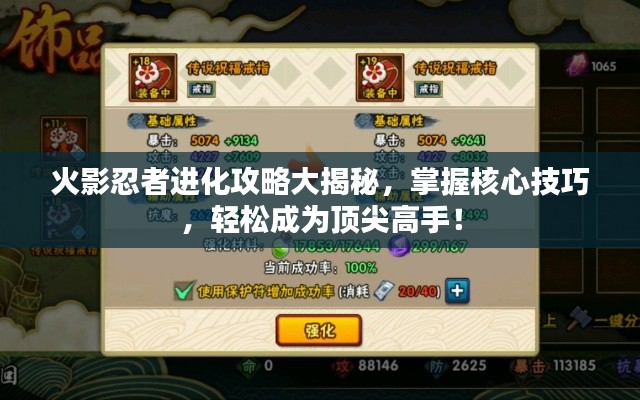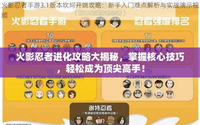 《火影忍者》作为一款热门的动漫改编游戏,吸引了大量粉丝和玩家的喜爱,在这个充满忍者、冒险和战斗的世界里,如何快速进化成为顶尖高手?本文将为你带来最新的火影忍者进化攻略,助你轻松掌握游戏核心,成为火影世界里的佼佼者!