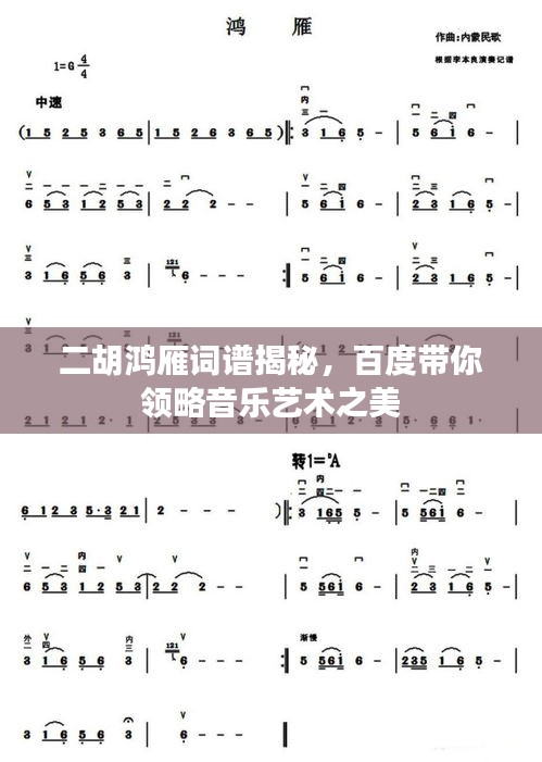 音乐是世界的共同语言,无论是激昂的旋律还是悠扬的曲调,都能触动人们内心深处的情感,在中国传统音乐中,二胡作为一种独特的拉弦乐器,其丰富的表现力深受人们喜爱,而鸿雁,作为一首经典之作,其词谱更是音乐爱好者们争相探寻的珍宝,就让我们一起通过百度一下,探寻二胡鸿雁的词谱,领略其艺术魅力。