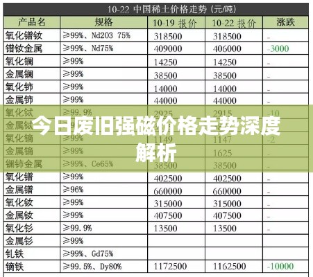 随着科技的快速发展,磁性材料在工业领域的应用越来越广泛,强磁作为一种重要的磁性材料,其价格动态一直备受关注,本文将为您带来今日废旧强磁的最新价格分析。
