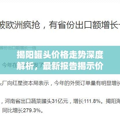 揭阳作为广东省的一个重要城市,其食品加工业,特别是罐头制造业,近年来逐渐崭露头角,随着国内外市场的需求和供给变化,揭阳罐头价格走势备受关注,本文将围绕揭阳罐头价格走势进行最新分析,以期为相关企业和消费者提供有价值的参考。