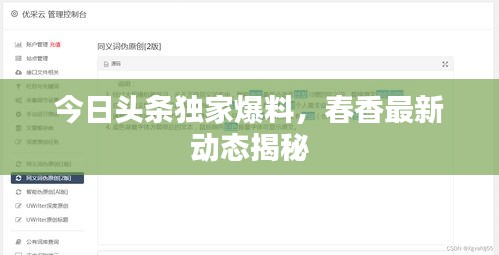 随着互联网的普及和科技的飞速发展,新闻资讯的获取变得异常便捷,在众多新闻平台中,"今日头条"以其独特的算法和精准的推荐系统赢得了广大用户的喜爱,我们将聚焦于"春香"这一关键词,探讨在今日头条上关于她的最新消息。