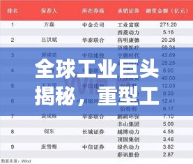 随着全球工业化的快速发展,重型工业在各国经济中的地位日益重要,本文将介绍全球重型工业排名前十名的企业,这些企业在钢铁、能源、机械等领域具有显著优势,引领全球工业发展。