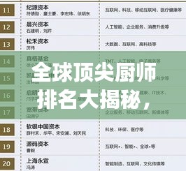 美食之于人类,既是味蕾的享受,也是精神的寄托,随着全球餐饮文化的交流与融合,厨师这个职业在全球范围内越来越受到重视,世界高手厨师的技艺不仅令人叹为观止,更是推动了全球美食文化的发展,本文将为您带来世界高手厨师的最新排名。
