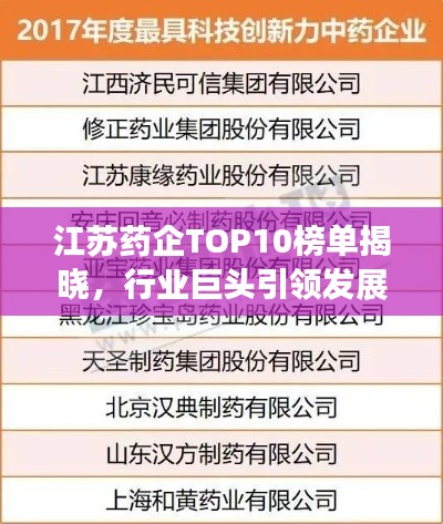 转载请注明来自马鞍山同杰良,本文标题:《江苏药企TOP10榜单揭晓,行业巨头引领发展风向标》