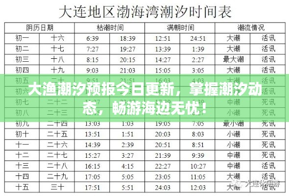 随着夏季的到来,越来越多的人开始关注海洋潮汐的变化,对于喜欢海边游玩、渔业活动以及潮汐相关研究的朋友们来说,潮汐预报显得尤为重要,本文将为大家带来关于大渔潮汐的最新预报信息。