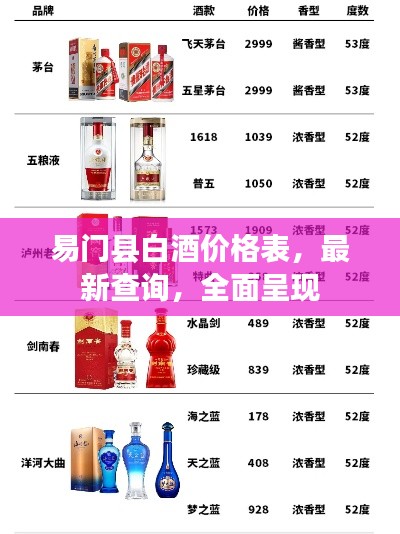 随着人们对传统文化的热爱和对美食的追求,白酒已经成为了中国餐桌上不可或缺的一部分,易门县作为白酒产业的重要产区之一,其白酒价格备受关注,本文将为您提供易门县白酒价格表的最新查询信息,让您轻松了解当地白酒市场动态。