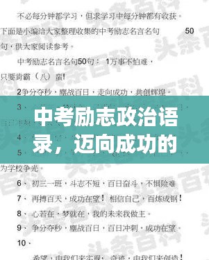 中考,是每个初中生迈向高中的重要一步,也是人生道路上的一次重要考验,面对中考,我们需要坚定的信念、毅力和决心,在这关键时刻,励志语录能为我们提供前进的动力,本文将从政治角度分享中考励志语录,帮助大家坚定信念,迎接挑战。