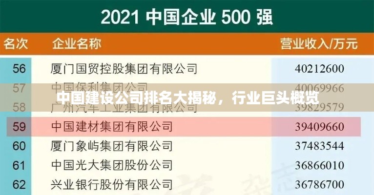 转载请注明来自马鞍山同杰良,本文标题:《中国建设公司排名大揭秘,行业巨头概览》