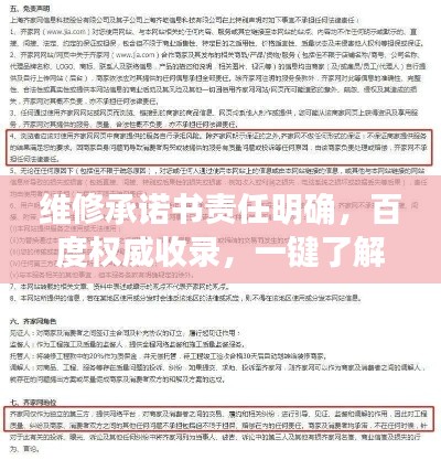在现代社会中,维修服务无处不在,涉及到各个领域和方面,无论是家居、机械、电子设备还是车辆等,都需要维修服务来保证其正常运行,而维修承诺书则是维修服务中不可或缺的一部分,它为维修双方提供了明确的责任和义务,保障了双方的权益,本文将围绕“维修承诺书”这一主题,通过百度一下,为您详细解析维修承诺书的相关内容。