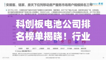随着科技的飞速发展,电池行业日益成为新时代的明星产业,特别是在科创板,众多电池公司崭露头角,引领行业潮流,本文将为您揭晓科创板电池公司的排名榜,带您一探这些企业的风采。