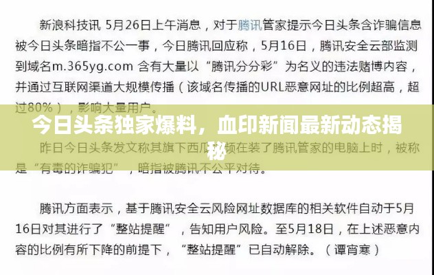 随着互联网的普及和社交媒体的飞速发展,新闻信息传播的速度比以往任何时候都要快,作为目前国内领先的新闻资讯平台之一,今日头条不断为用户提供最新、最快、最热门的新闻资讯,有一条名为“血印新闻”的今日头条消息引起了广泛关注,本文将围绕这一新闻事件展开分析,并探讨其背景和影响。