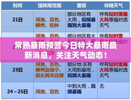常熟市迎来了一场突如其来的大暴雨,给当地带来了显著的影响,本文将为大家介绍关于今日常熟大暴雨的最新消息。