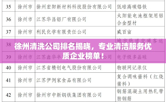 徐州,这座历史悠久的城市,随着经济的发展,各行各业都在蓬勃壮大,清洗行业作为服务行业的细分领域,也在徐州市场上崭露头角,本文将为您介绍徐州清洗公司的排名,旨在帮助您在众多公司中选择最适合的服务商。