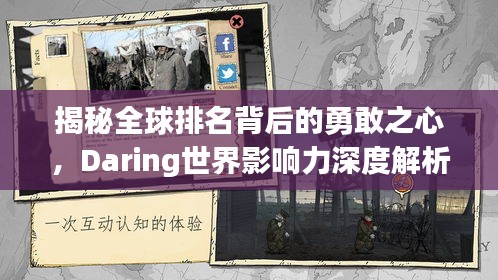 当我们谈论“Daring世界排名”时,我们究竟在谈论什么?这是一个跨越多个领域,涵盖各种勇敢之心的全球排名,在这个多元化的世界里,勇敢不仅仅体现在战场上的英勇无畏,还包括探索未知、挑战自我、创新创造的勇气,我们就来探讨一下这个引人注目的主题,揭示勇敢在全球的影响力。