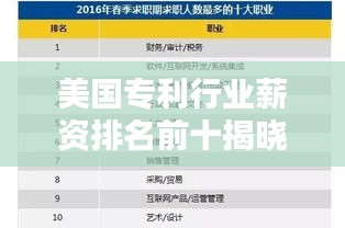 随着科技的不断进步和创新精神的鼓励,专利已成为推动社会发展的重要引擎之一,在美国,专利行业更是吸引了众多精英的关注和投入,本文将为您揭晓美国专利薪资排名前十名的职业,以期对想要从事专利行业的朋友提供一些参考。