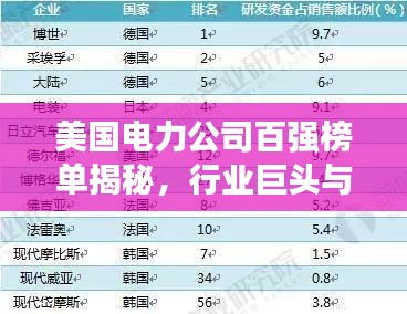 随着全球经济的发展和能源结构的转型,电力行业作为支撑国家经济发展的重要基础设施,其发展状况备受关注,美国作为世界上最大的经济体之一,其电力行业的发展尤为引人注目,本文将围绕“美国电力公司百强排名榜”这一主题,揭示美国电力行业的竞争格局以及主要电力公司的发展状况。