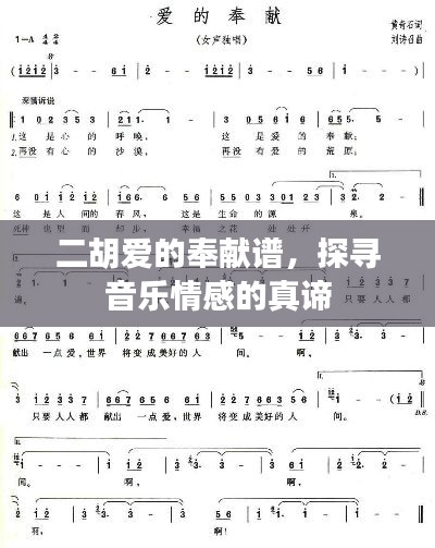 音乐是一种跨越语言和文化界限的艺术形式,它能够触动人的心灵,唤起人们的共鸣,在中国传统音乐中,二胡作为一种独特的拉弦乐器,以其独特的音色和表现力,成为了音乐文化中的瑰宝,而“爱的奉献谱”则是二胡演奏中的经典曲目之一,通过百度,我们可以更深入地了解这一曲谱背后的故事和情感。