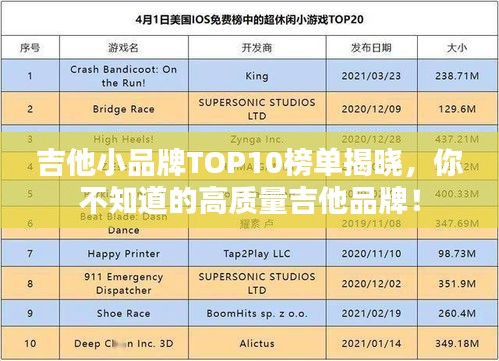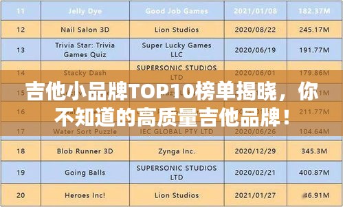 吉他作为一种广受欢迎的乐器,吸引了众多音乐爱好者的目光,在众多吉他品牌中,本文将介绍吉他小品牌排名前十名,帮助大家了解哪些品牌在小品牌市场中表现出色。