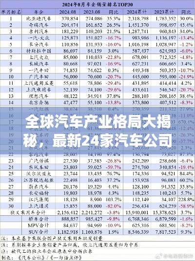 随着全球汽车产业的快速发展,各大汽车公司的竞争也日益激烈,在此,我们为您呈现24家汽车公司排名榜,带您了解全球汽车产业的格局变迁。