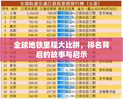 世界地铁里程排名不仅仅是一个简单的排名,背后反映了各国城市发展的理念、技术和经济实力,地铁建设需要巨大的资金投入和技术支持,是一个国家综合实力的体现,地铁也是缓解城市交通压力、改善居民生活质量的重要手段。