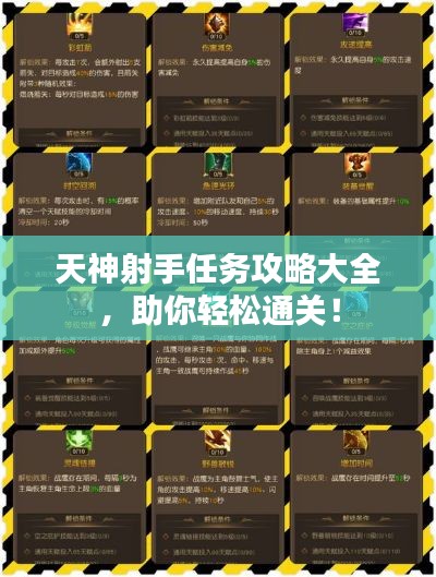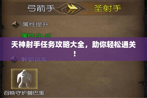 通过本文的天神射手任务最新攻略,相信你已经对任务有了全面的了解,在实际游戏中,注重策略、技巧和团队协作,相信你能轻松完成任务,获得丰厚的奖励,祝你游戏愉快!