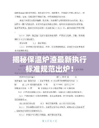 随着科技的不断进步和环保意识的日益增强,对于工业废弃物如炉渣的处理与利用,已成为社会各界关注的焦点,炉渣的保温性能在多个领域具有广泛的应用价值,制定并执行相应的保温炉渣标准规范显得尤为重要,本文旨在介绍保温炉渣执行标准的最新规范,以确保炉渣的合理利用和环保处理。