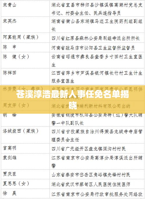 苍溪县党委组织部发布了一份最新任免名单,其中淳浩同志的职务变动引起了广泛关注,本文将详细介绍此次任免名单的情况。