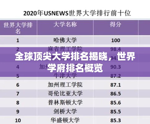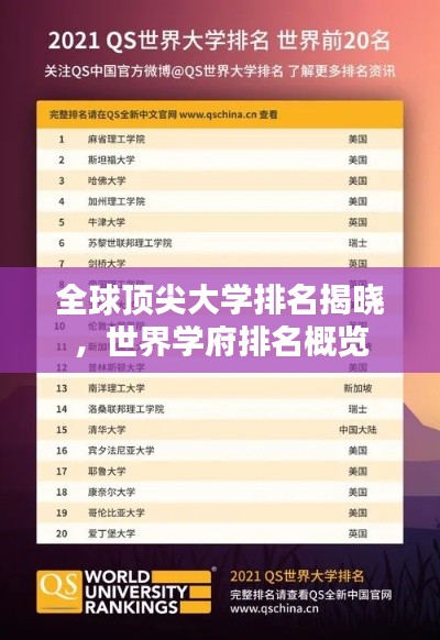 全球范围内的一项重要排名揭晓——世界大学排名正式公布,这一排名汇集了全球顶尖学府,展示了它们在学术、科研、教学等方面的综合实力,本文将为您详细介绍这一排名,带您领略全球顶尖学府的风采。