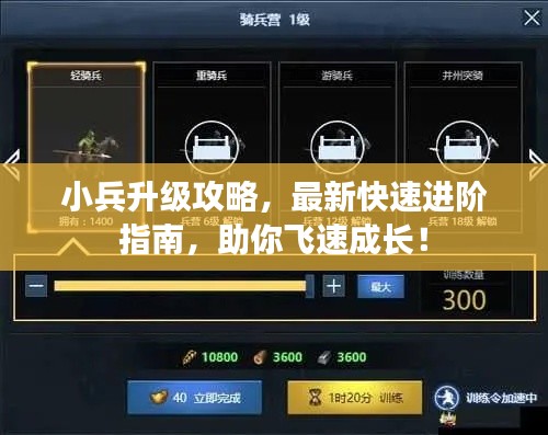 小兵升级是游戏中重要的环节之一,通过升级可以提升小兵的战斗能力,解锁新的技能,使其在战场上更加强大,本文将为大家带来最新的“小兵升级攻略”,帮助大家快速掌握小兵升级的技巧和方法,轻松进阶。