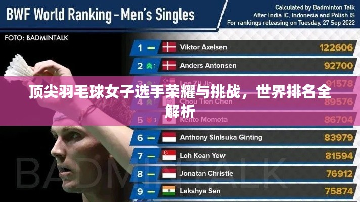 羽毛球作为世界上最受欢迎的运动之一,拥有众多顶尖选手,在羽毛球女子方面,世界排名靠前的选手们凭借出色的技艺和不懈的努力,赢得了全球球迷的热爱和尊敬,本文将探讨羽球女子世界排名背后的故事,展现这些顶尖选手的荣耀与挑战。
