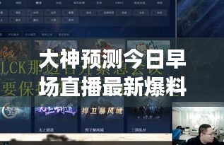 随着互联网的普及和科技的飞速发展,直播行业日益兴盛,各种类型的直播内容层出不穷,今日早场直播,一个引人瞩目的关键词,在众多直播中脱颖而出,而大神预测,更是为这场直播增添了一层神秘和期待,本文将为您解读这场直播的最新消息。