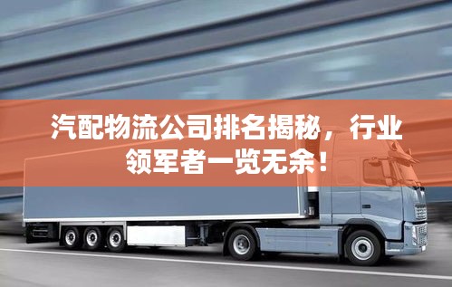 随着汽车产业的飞速发展,汽配物流行业也日渐兴盛,本文将为您揭示汽配物流公司的排名,带您了解行业内的佼佼者,以便在复杂的物流市场中做出明智的选择。