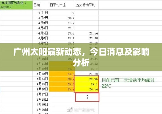 本文围绕“今日广州太阳消息最新消息”这一主题,介绍了广州地区最新的太阳动态及相关影响,从太阳活动、气象预测、环境保护和市民日常生活等多个角度进行了阐述,市民在享受阳光普照的同时,也需关注气象预测和空气质量,做好防晒措施,合理安排出行时间,广州地区还应继续加大太阳能资源的开发利用力度,推动清洁能源的发展,为城市可持续发展贡献力量。