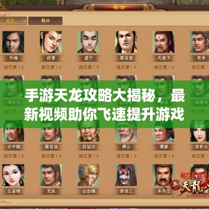 随着手游天龙的热度持续上升,越来越多的玩家开始关注攻略和技巧,本文将为你介绍手游天龙攻略最新视频,帮助你提升游戏水平,轻松成为顶尖玩家。