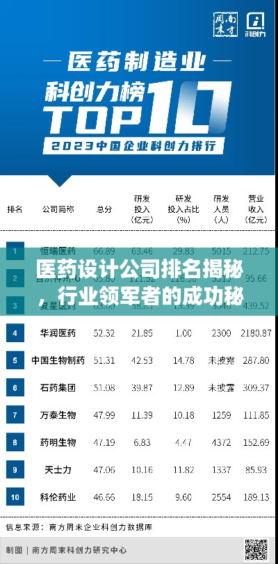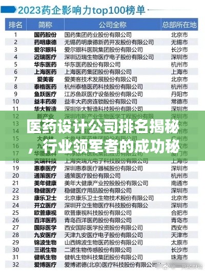 本文揭示了医药设计公司排名的背后故事,介绍了行业内领先的医药设计公司及其优势,我们还分析了医药设计公司的成功要素和未来展望,希望本文能够帮助读者更好地了解医药设计行业,为投资者和从业者提供参考。
