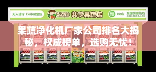 随着人们对食品安全和健康的关注度不断提高,果蔬净化机逐渐成为家庭必备的电器产品,果蔬净化机通过先进的技术,有效去除果蔬表面的农药残留和细菌,保障人们的饮食安全,本文将对当前市场上的果蔬净化机厂家公司进行排名介绍,以帮助消费者更好地了解并选择优质的产品。