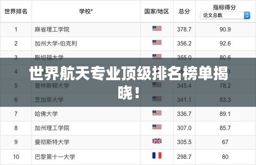 航天科技,作为推动人类文明进步的重要力量,一直备受全球关注,随着科技的飞速发展,各国的航天竞争也日益激烈,在这样的背景下,世界顶级航天专业的排名成为了众多学子关注的焦点,本文将为你揭示全球航天专业的排名情况,带你了解世界顶级航天学府的风采。