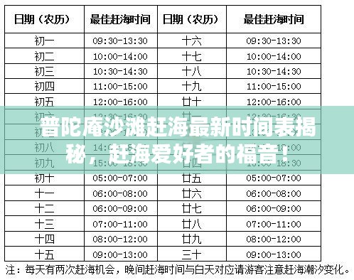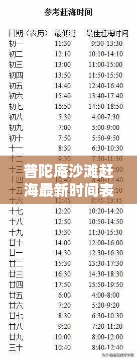 普陀庵沙滩是一个充满魅力的地方,赶海活动更是让人乐在其中,掌握最新的赶海时间表,能让我们更好地体验赶海的乐趣,希望本文能为您的普陀庵沙滩之旅提供帮助,祝您赶海愉快!